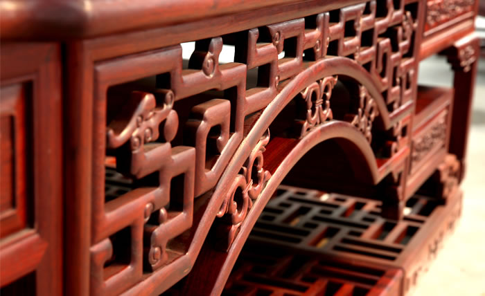 流程三雕刻工序 為了讓紅木家具看上去更美觀,在木工工序完成之后一般都會(huì)用一些或簡(jiǎn)單或復(fù)雜的雕花來(lái)進(jìn)行裝飾,也就是行業(yè)中所說(shuō)的雕刻紋飾。雕刻紋飾必須在“認(rèn)榫”完成后進(jìn)行,因?yàn)椤罢J(rèn)榫”時(shí)需要修整,如果先做好雕花再開榫,紋理很難保證雕花部件都在同一平面上,而此時(shí)為了保證雕花...